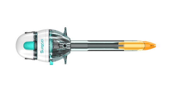 Ergonomic obturator design fits user’ palm better. Making it more comfortable to hold and puncture.